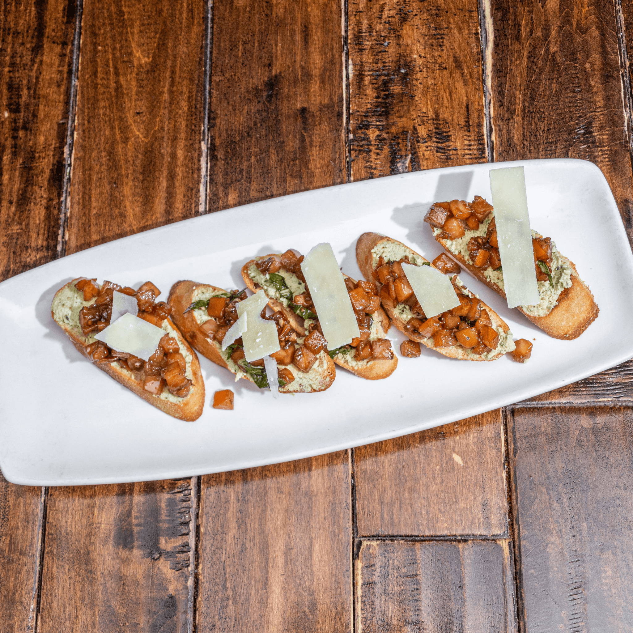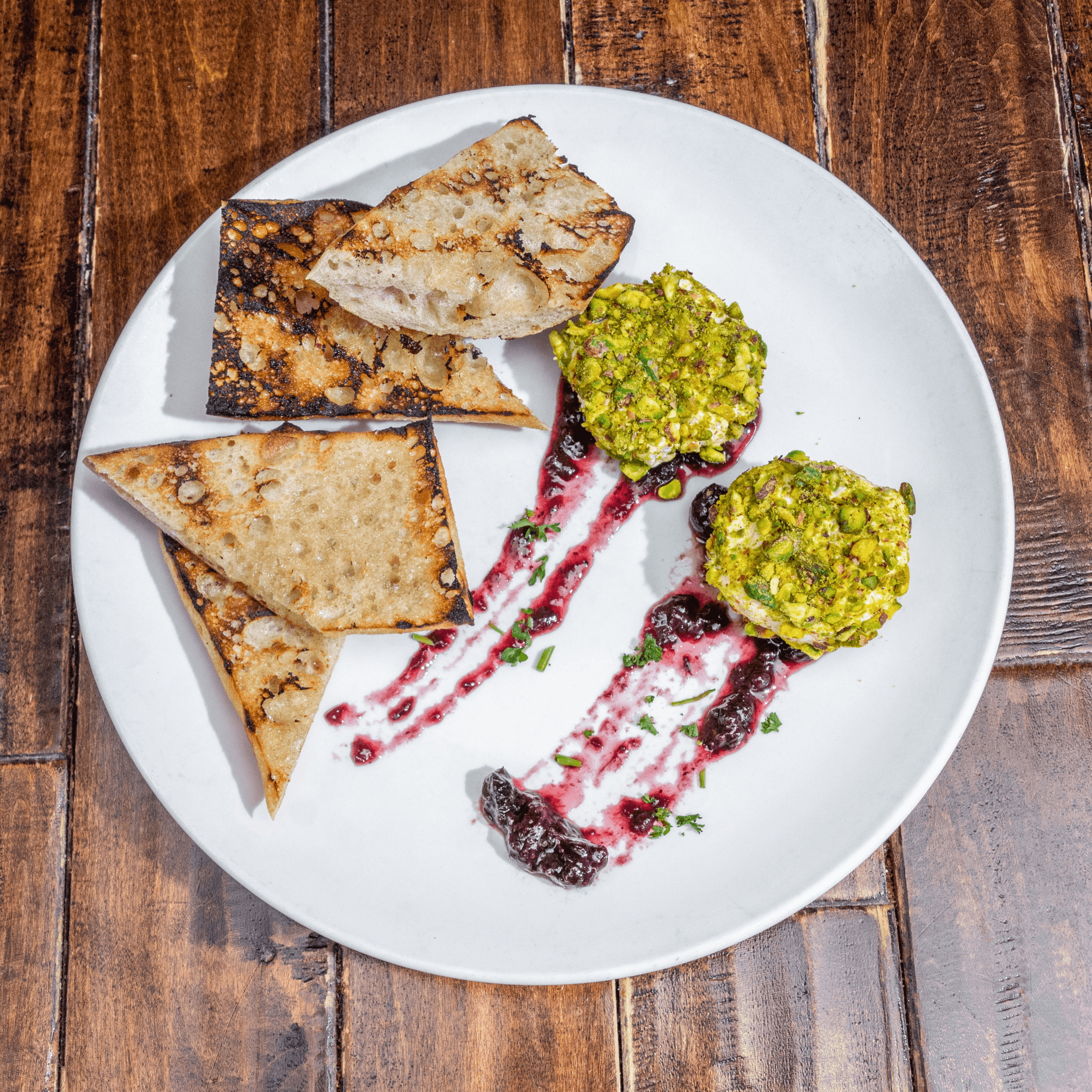 Sautéed chicken cutlets crusted with roasted garlic, Gorgonzola, and balsamic sauce.