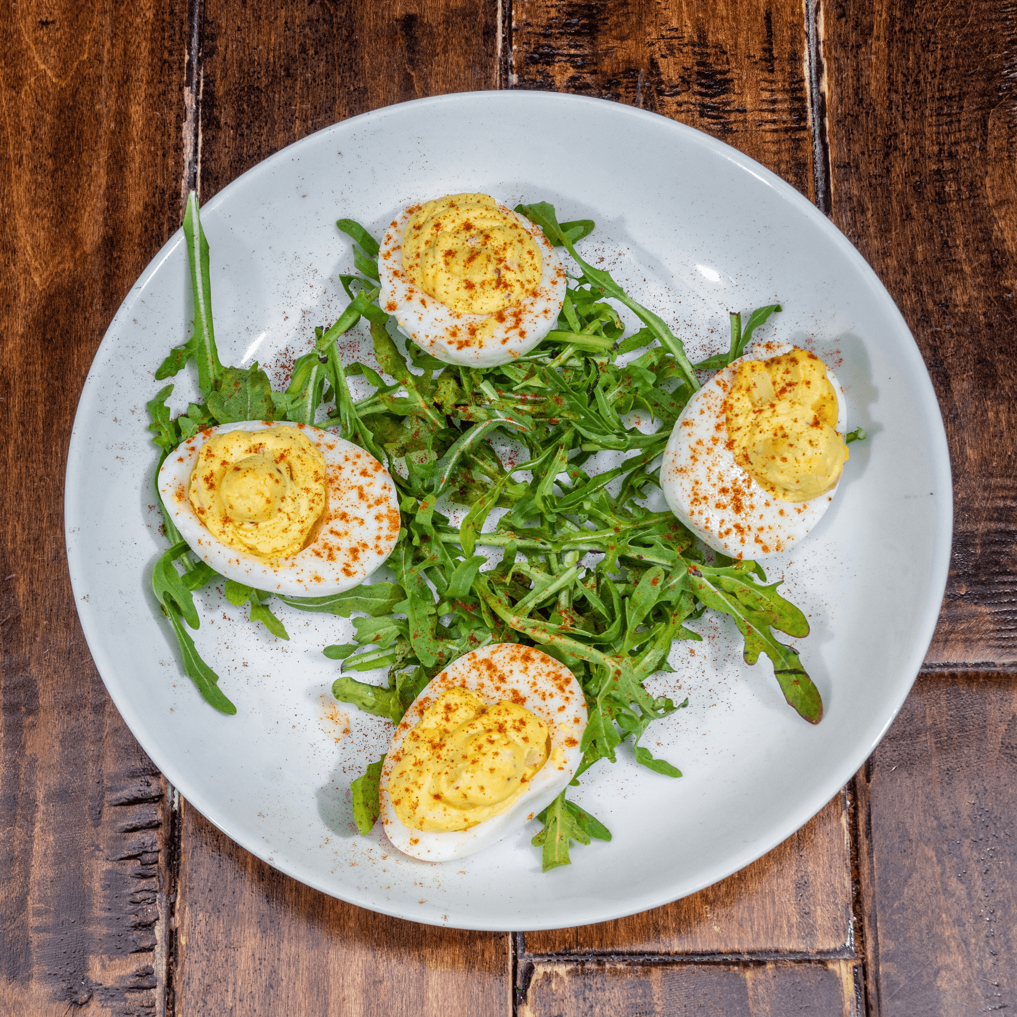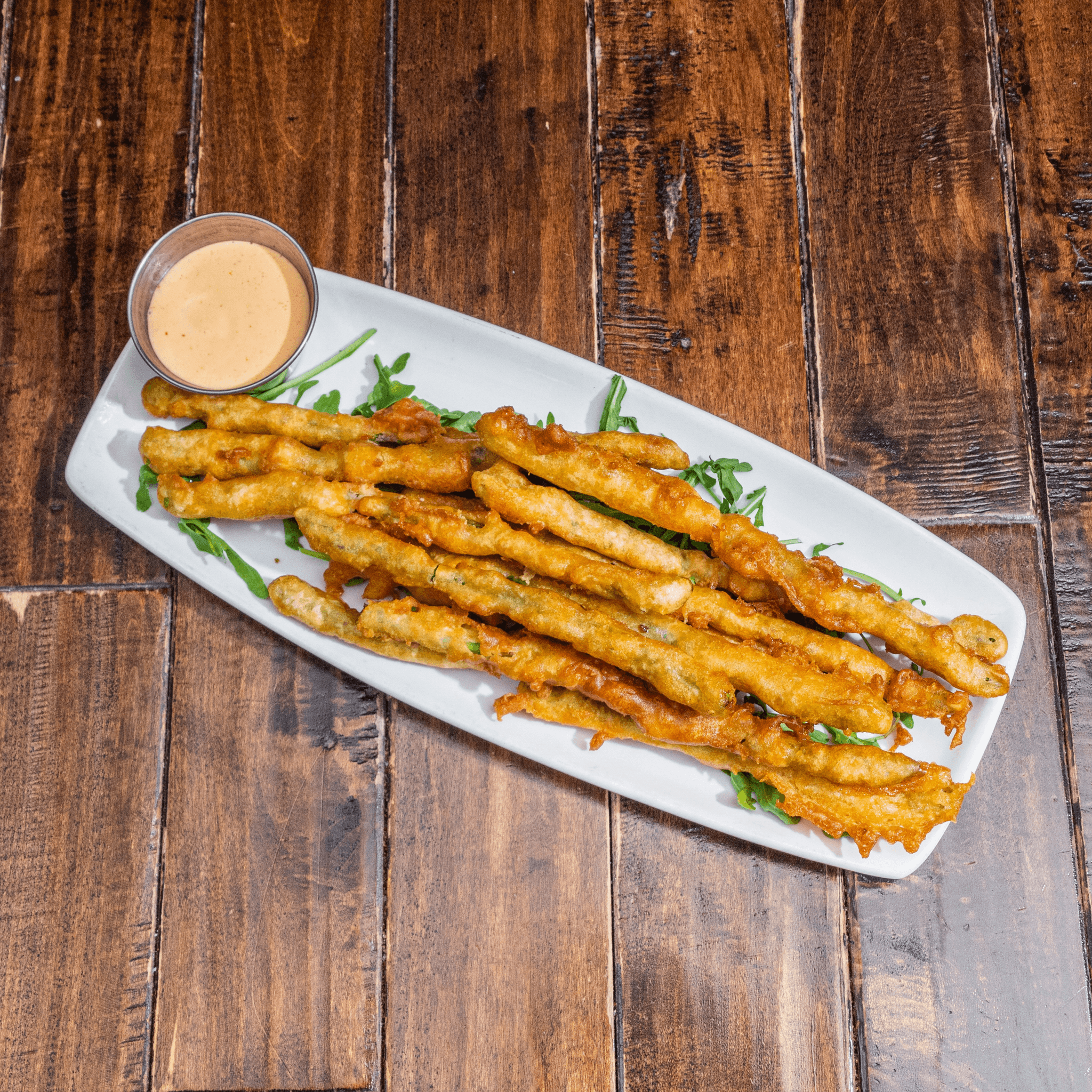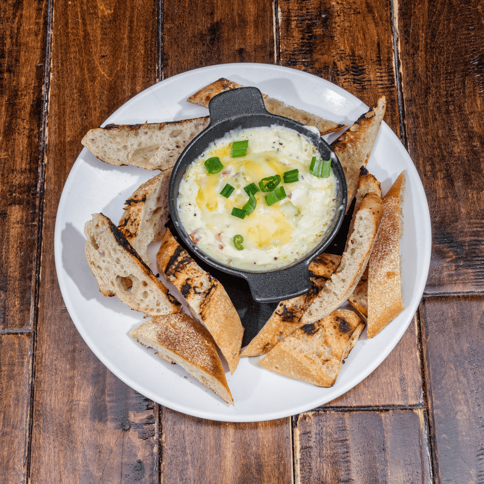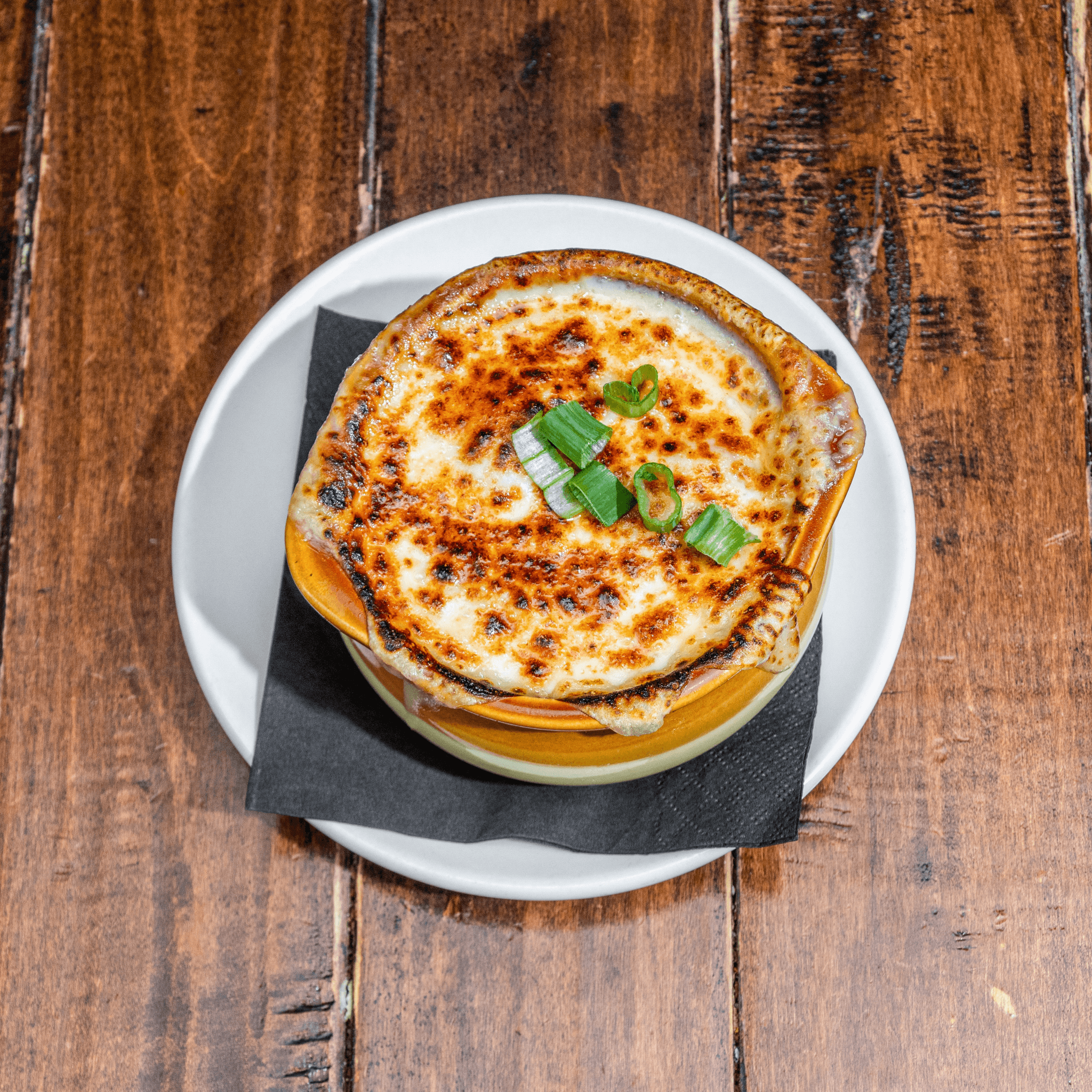 Freshly ground pork, veal, & beef wrapped in bacon, buttered mashed potatoes, and fried tobacco onions.